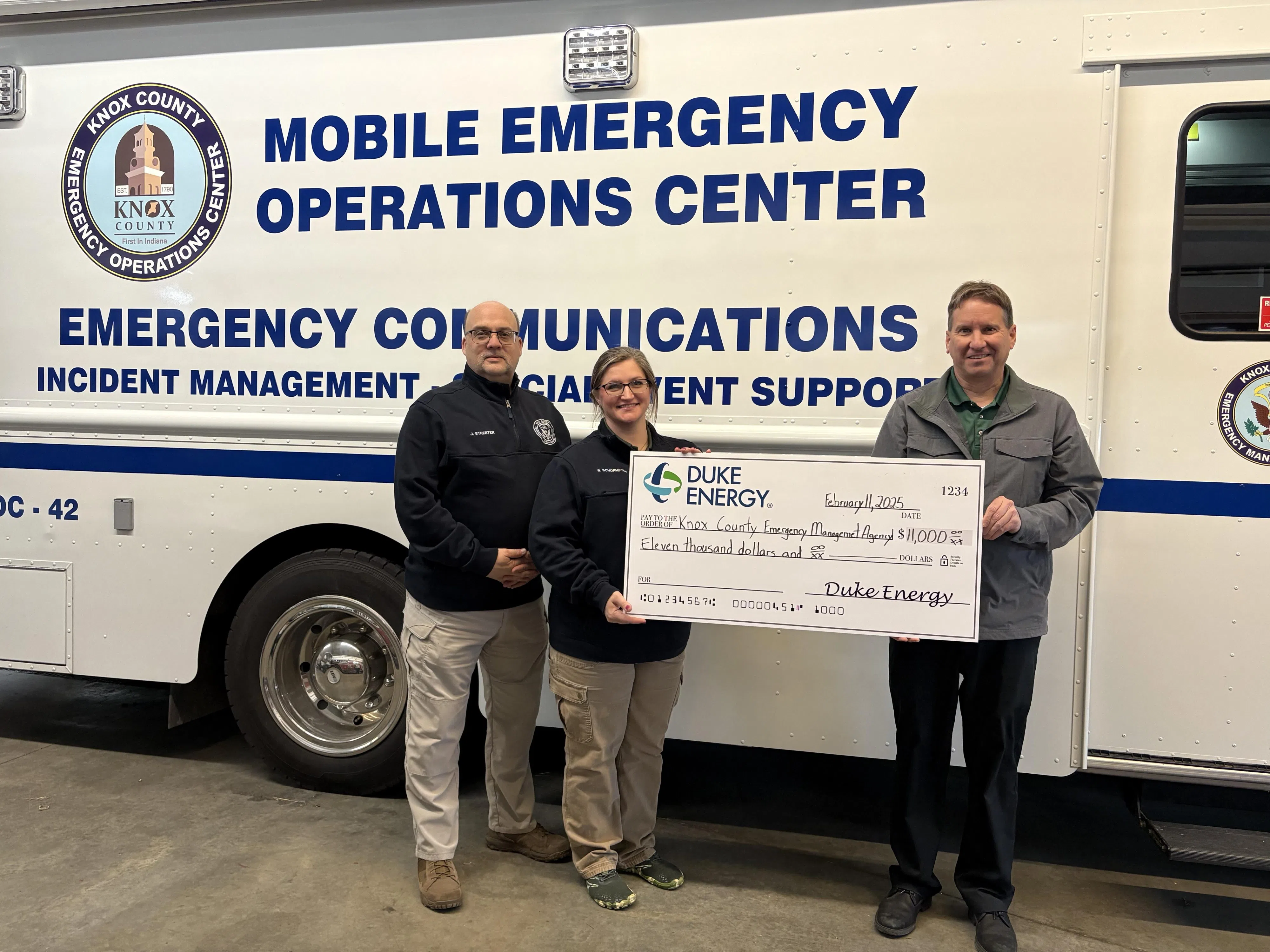 The Duke Energy Foundation has given 11-thousand dollars to the Knox County Emergency Management Agency. The grant will be dedicated to emergency preparedness for either natural or man-made disasters.