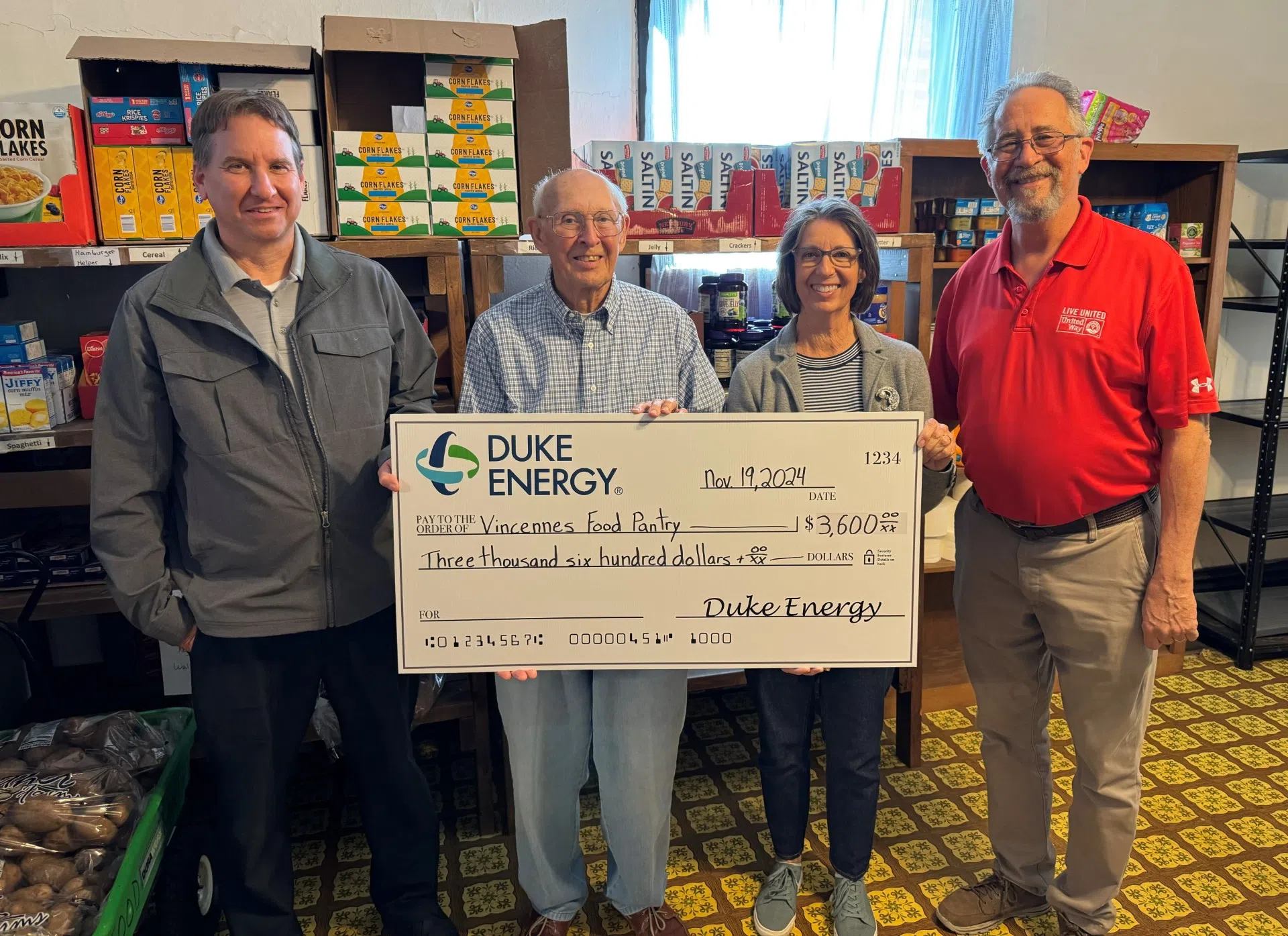 The Duke Energy Foundation has given 11-thousand dollars to the United Way of Knox County to help with food instability. The three checks will pass through to three food pantries-Saint Vincent DePaul ...